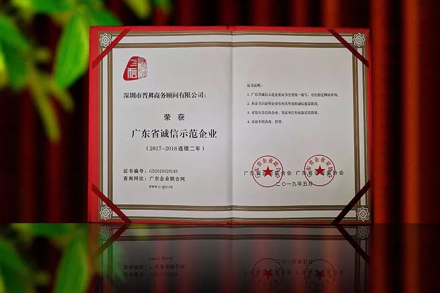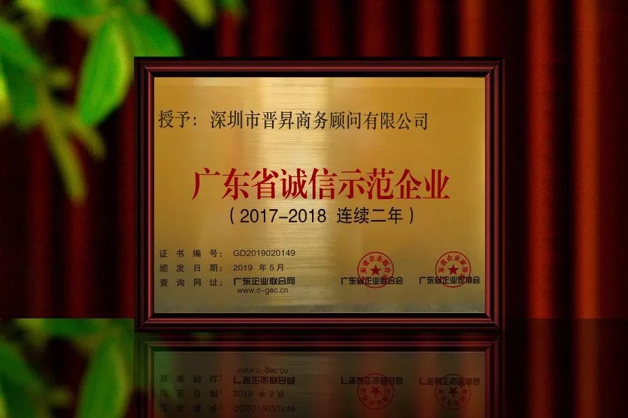 自此榮譽連續舉辦至今,廣東省誠信示范企業評選對推動廣東省經濟領域誠信建設工作發揮了積極的作用,具有較高的公信度和廣泛的社會影響力。此次獲獎也是對晉昇國際多年來企業持續誠信建設成效的充分認可,亦是晉昇國際強大品牌實力的有力體現。
