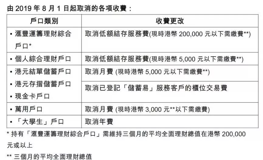 按照匯豐此前要求,其對余額不足5000港元的“個人綜合理財戶口”征收60港元的月費,對余額不足20萬港元的“運籌理財綜合戶口”征收120港元的月費。此次舉措,將使超過300萬名匯豐個人客戶受惠。
