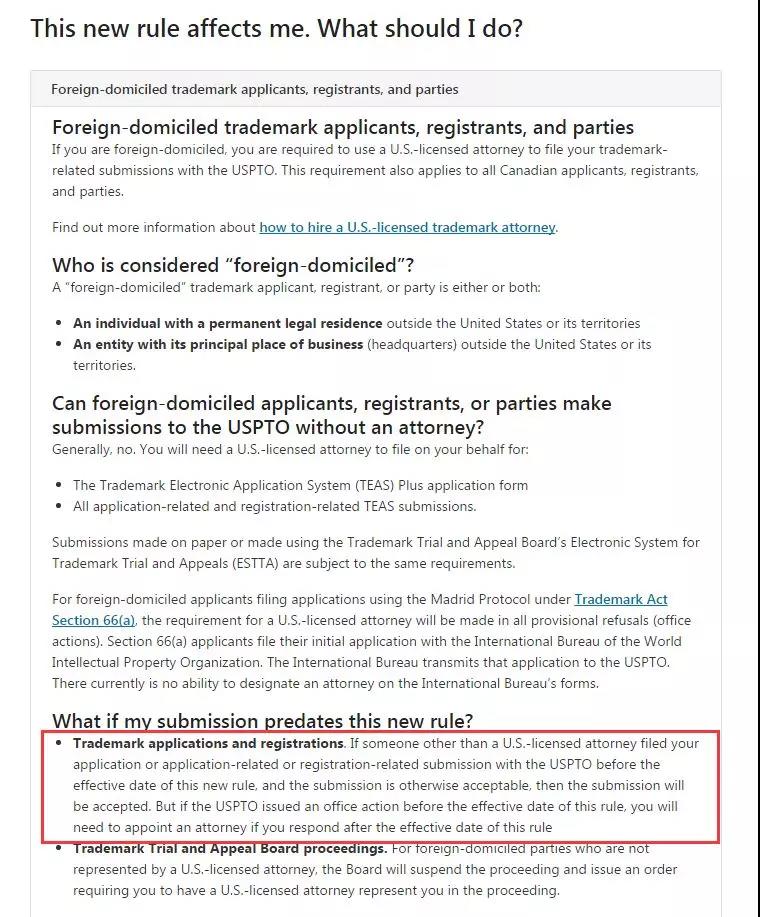但是在8月3日后下發商標審查意見、商標異議等程序,則必須指定美國執業律師進行代理。