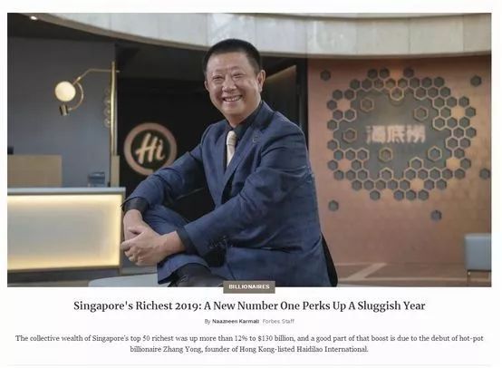 《福布斯亞洲》指出,盡管新加坡政府預測今年經濟與去年持平,過去一年的新加坡股市也下滑了3.5%,新加坡50大富豪的整體財富仍是上升了12%至1300億美元,“大部分是因為張勇今年入榜。”