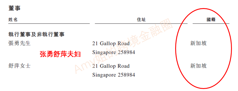 但直到消息被證實是在2018年上市之期。根據2018年海底撈向港交所遞交的招股說明書,公司負責人的國籍、住址一列顯示,張勇、舒萍夫婦二人的國籍、住址均在新加坡。