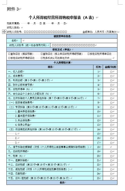 (5)《個人所得稅經營所得納稅申報表(A表)》
