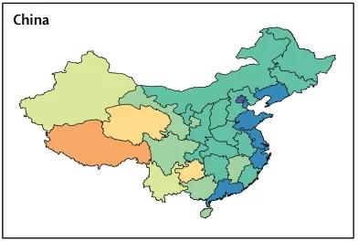 然而西部地區則表現較差,HAQ指數主要位于世界的第5、第6分位,其中HAQ指數最低的為西藏地區(HAQ為48.0分,95% UI為43.5-53.2),相當于世界第130名左右,與北京相比兩者相差43.5分的距離。